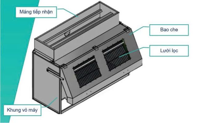 - Thu gom rác thải trượt xuống từ mặt lưới lọc